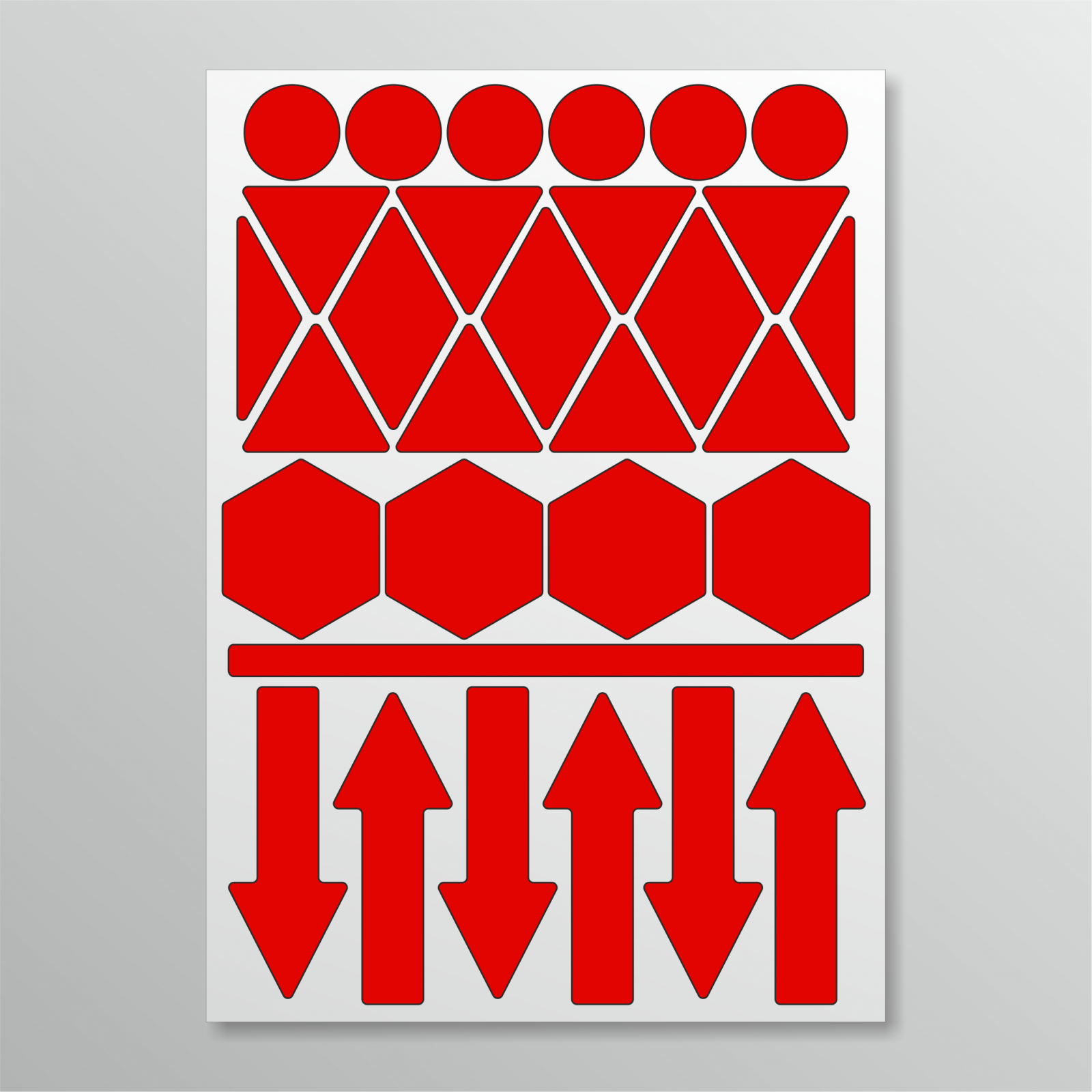 Bezpečnostní samolepky jsou vyrobeny z vysoce reflexního samolepícího materiálu (dokonale odráží světlo), který se používá nejen k výrobě dopravních značek a dálničních návěstidel. Samolepky jsou dodávány ve čtyřech základních barvách (bílá, žlutá, červená a modrá). Umístění je možné na každý hladký a očištěný povrch, např. na hranu dveří automobilů, jízdní kola, helmy, dětské kočárky a další předměty, které chcete ve tmě zviditelnit.