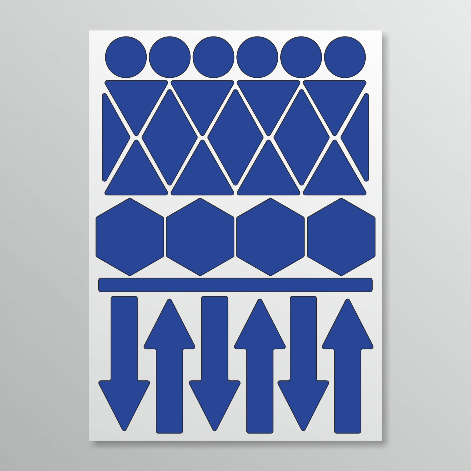 Bezpečnostní samolepky jsou vyrobeny z vysoce reflexního samolepícího materiálu (dokonale odráží světlo), který se používá nejen k výrobě dopravních značek a dálničních návěstidel. Samolepky jsou dodávány ve čtyřech základních barvách (bílá, žlutá, červená a modrá). Umístění je možné na každý hladký a očištěný povrch, např. na hranu dveří automobilů, jízdní kola, helmy, dětské kočárky a další předměty, které chcete ve tmě zviditelnit.